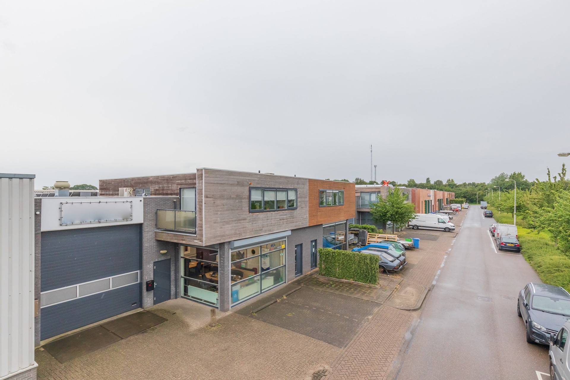 Op het kleinschalige bedrijventerrein "De Drechthoek" aan de rand van Leimuiden bevindt zich deze goed bereikbare kantoorruimte op de 1e verdieping.