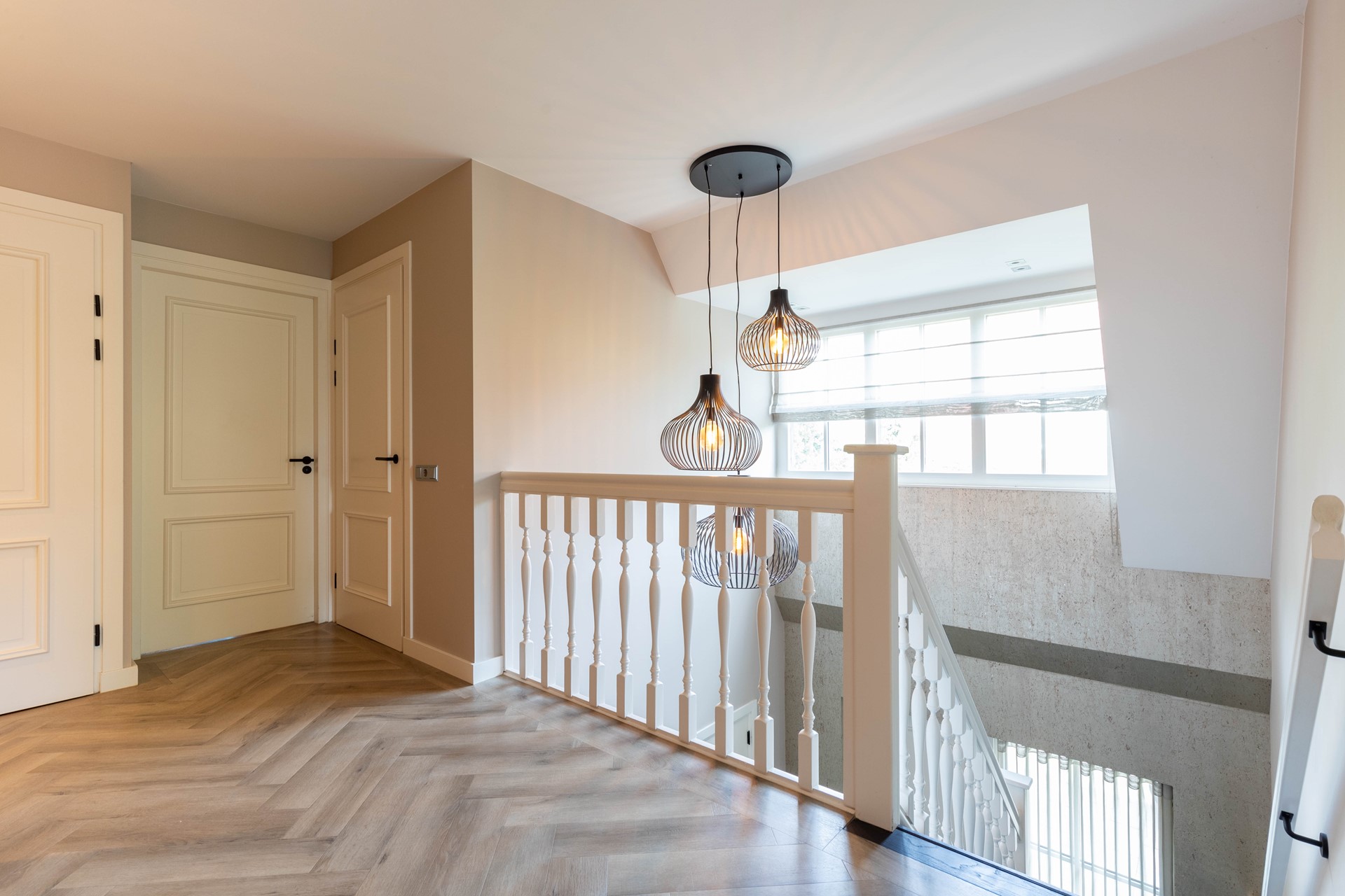 De overloop met vide biedt een prachtig ruimtelijk effect en geeft toegang tot alle vertrekken. Aan de voorzijde bevinden zich twee slaapkamers, terwijl aan de achterzijde een royale master bedroom met mirror-tv is gesitueerd met luxe badkamer en suite, uitgerust met een 2e mirror-tv, ligbad, dubbele wastafel, toilet, zonnedouche en een lichtstraat in het dak. Vanuit deze kamer is er fraai uitzicht over de tuin. Tevens aan de achterzijde: een vierde slaapkamer en een tweede complete badkamer met inloopdouche, dubbele wastafel en toilet. Alle slaapkamers zijn voorzien van hotelairco welke geluidloos zijn en zeer efficiënt.