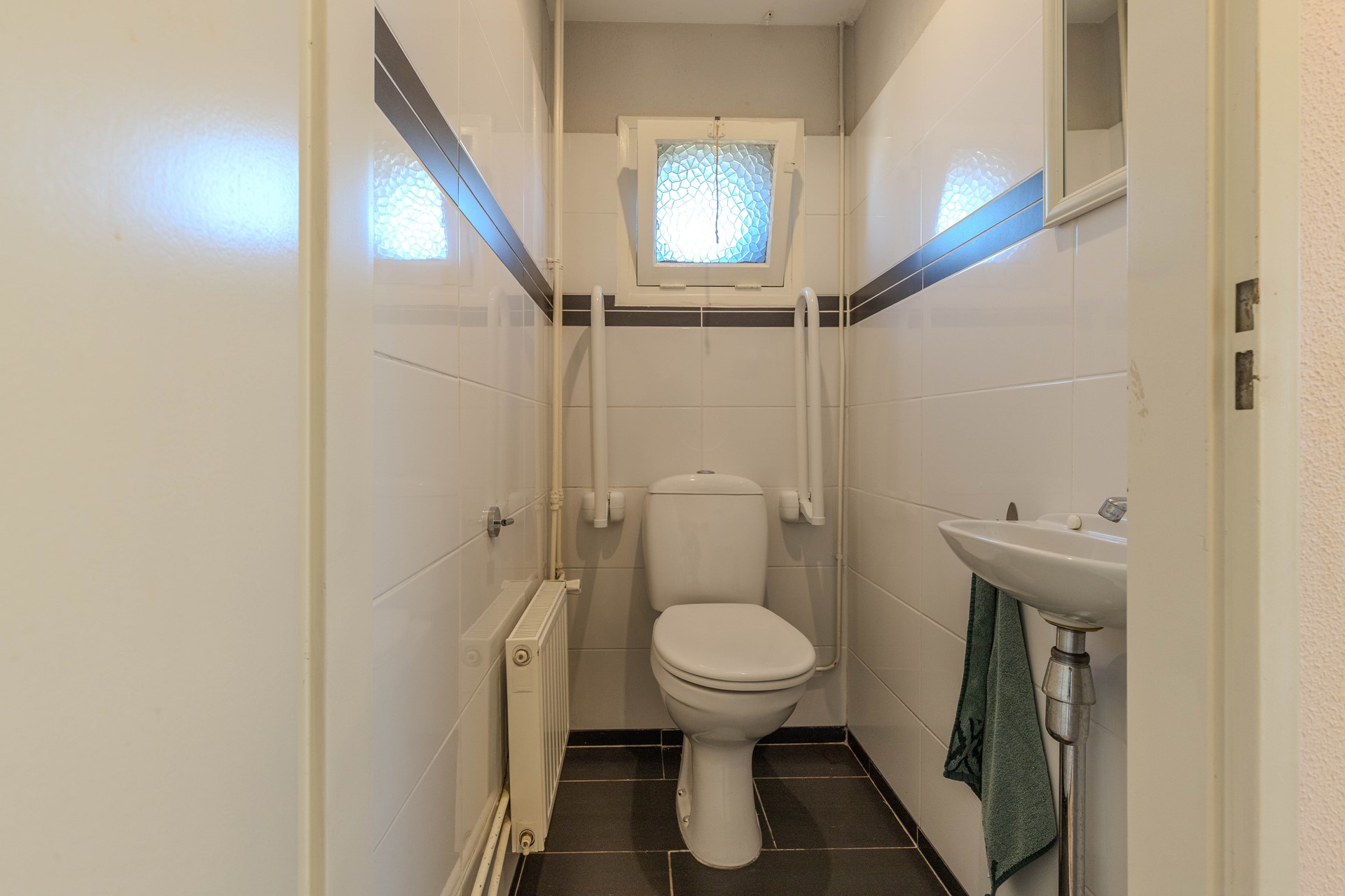 Aan de achterzijde van de woning bevindt zich een ruime wasruimte met opstelplaats voor de cv-installatie, witgoedaansluitingen en extra bergruimte. Aangrenzend bevinden zich nog een tweede toiletruimte en meerdere praktische bergkasten.