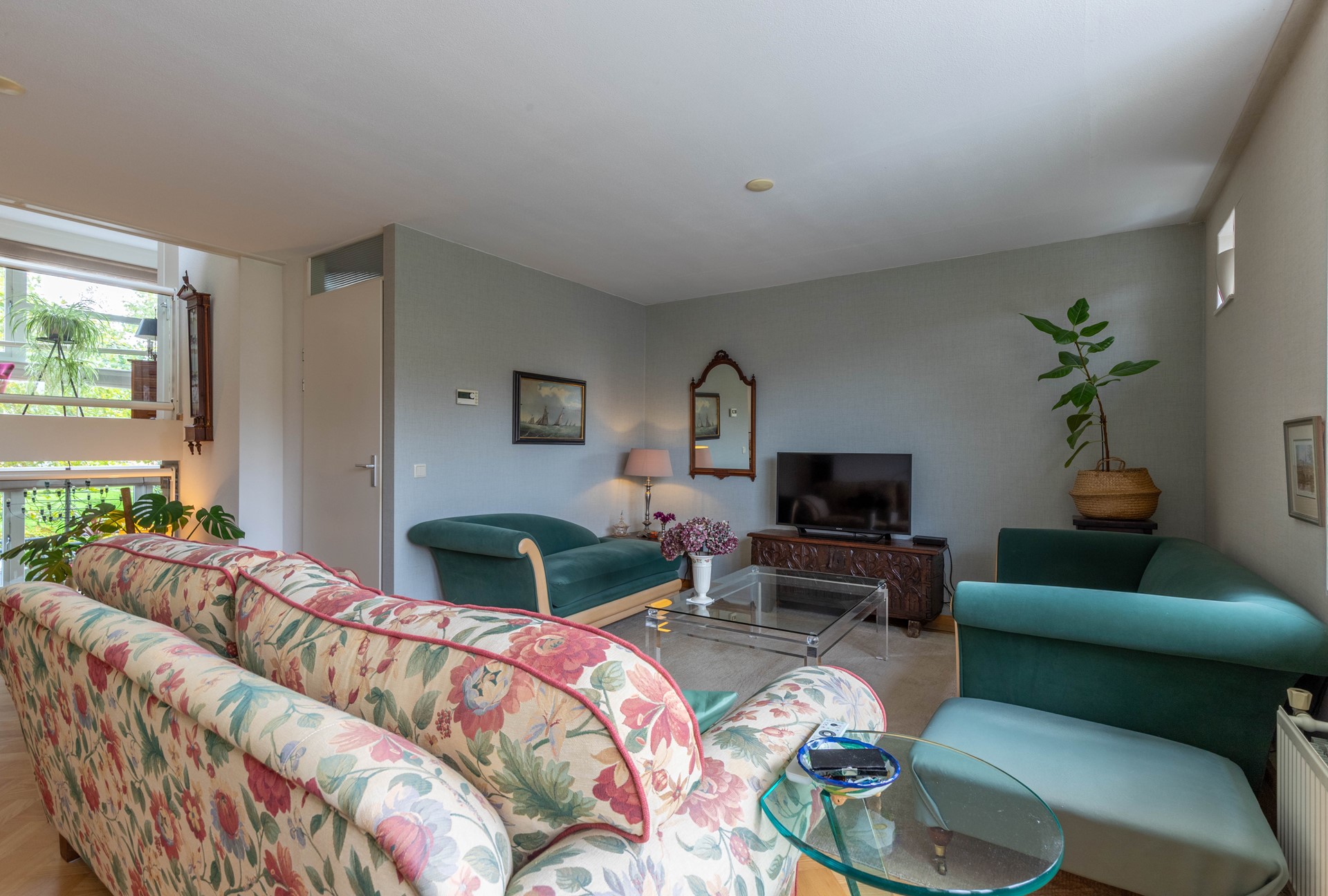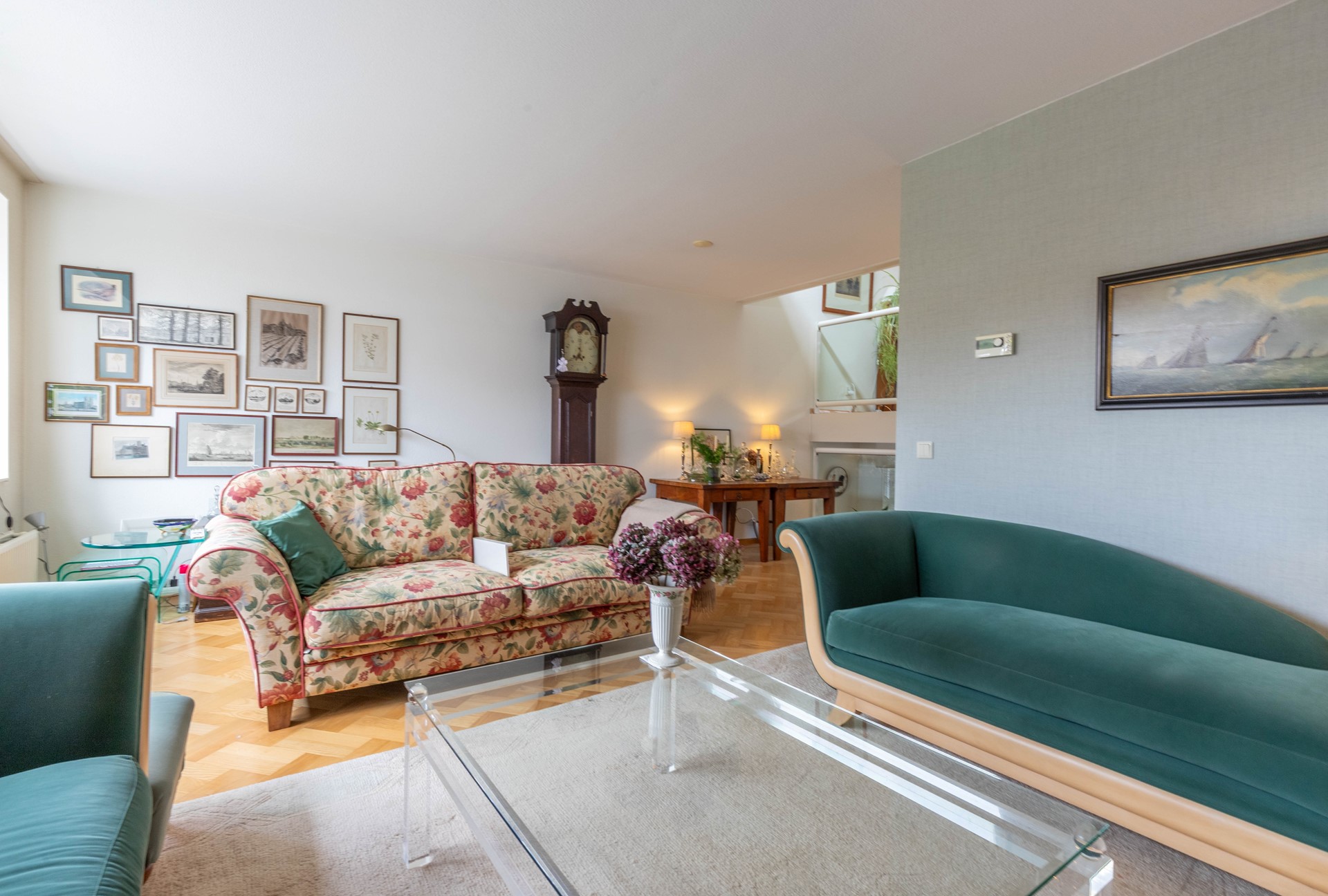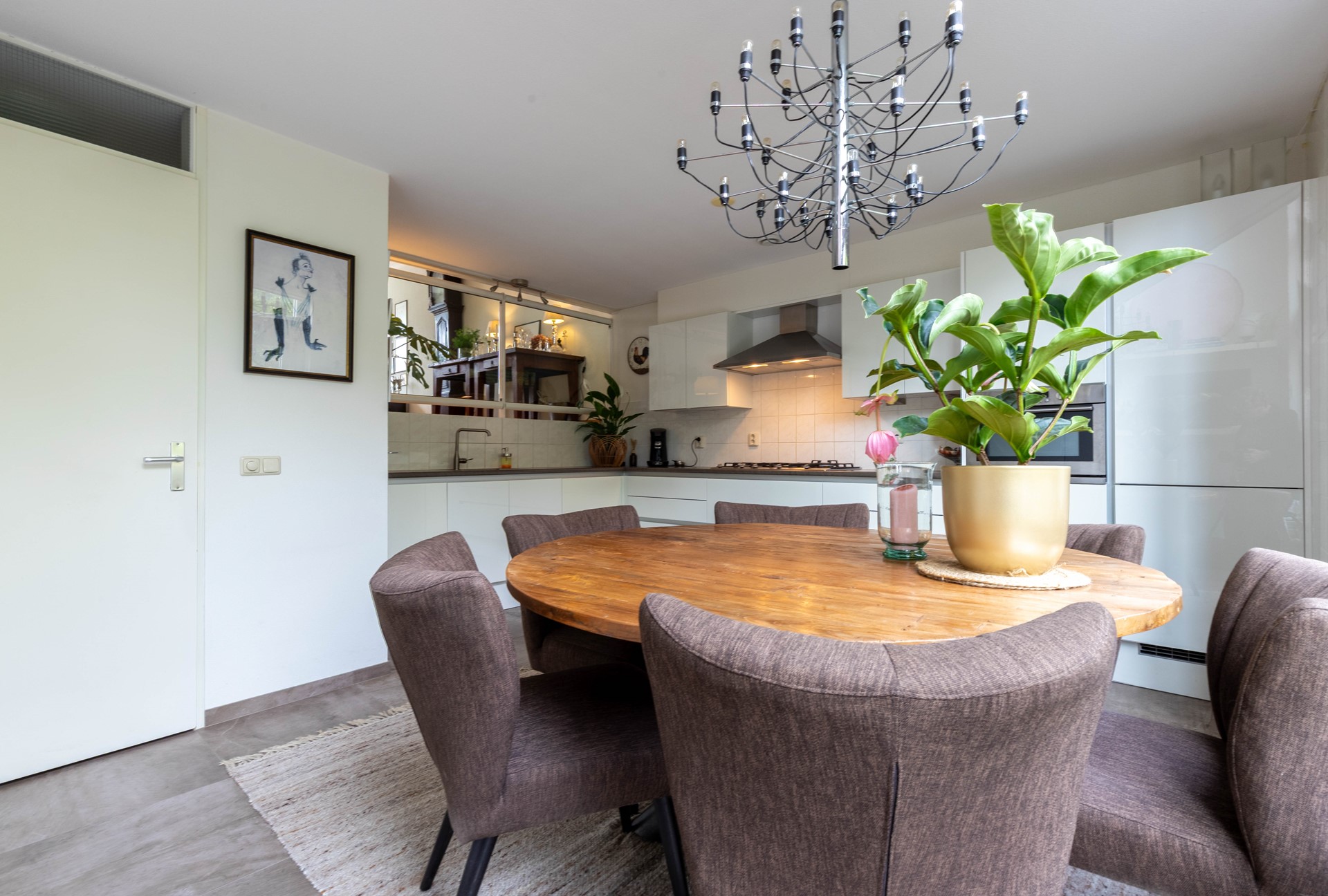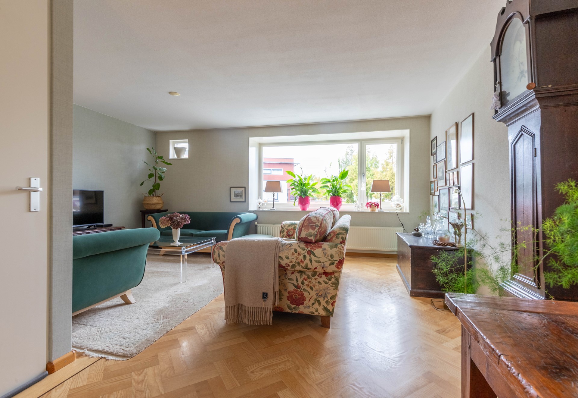 De videkamer schuin boven de woonkamer is een praktische ruimte. Inzetbaar als televisiekamer, werkkamer of eventueel te verbouwen naar slaapkamer. De kamer heeft aan de achterzijde connectie met de ondergelegen keuken. Vanuit deze kamer heeft u mooi uitzicht over park achter de woning. Ook deze kamer heeft een houten vloer in visgraat motief. De op de foto's aanwezige piano is overigens ter overname.