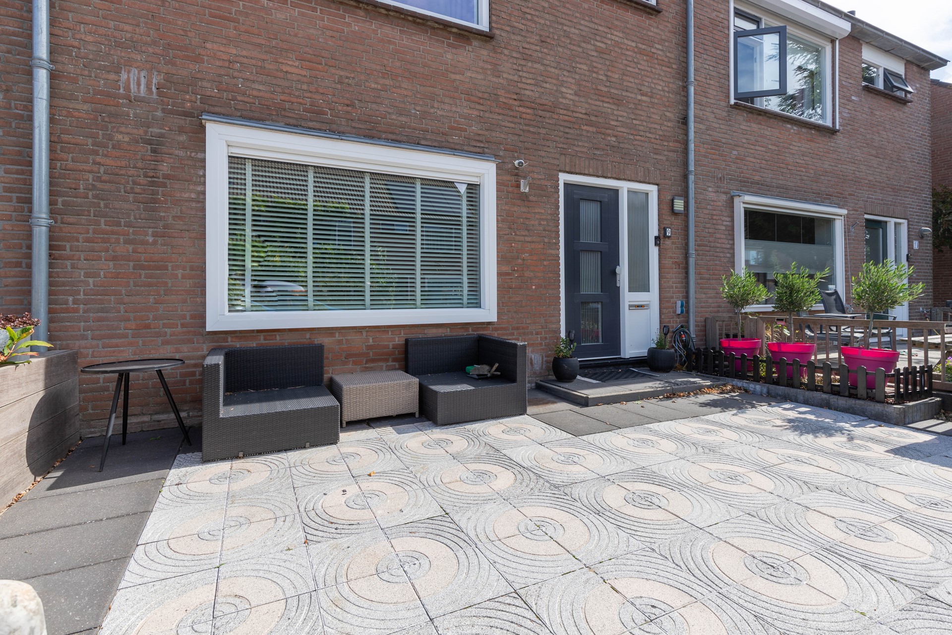 Aan de voorzijde ligt een verzorgde voortuin op het westen. Dankzij de rustige ligging van de straat is dit een fijne plek om in de avondzon te ontspannen. De tuin is grotendeels bestraat en voorzien van een strakke border met beplanting, waardoor het onderhoud minimaal blijft.