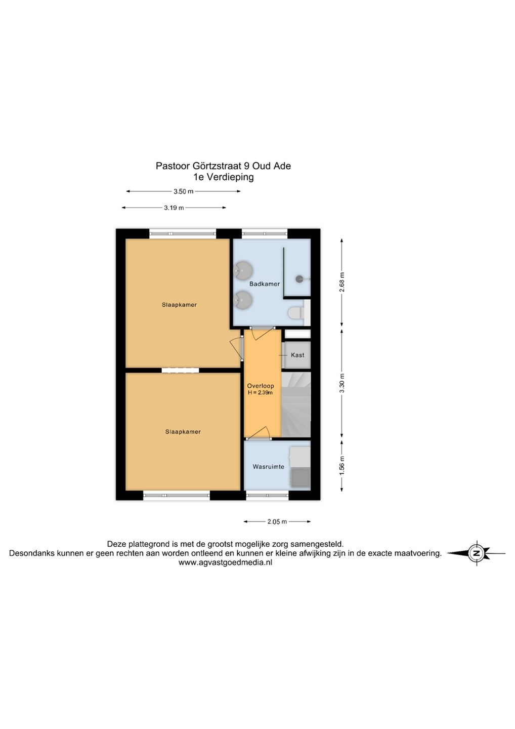 Op de eerste verdieping kom je uit op een ruime overloop, die toegang geeft tot de badkamer, wasruimte en slaapkamer. Daarnaast is er een praktische bergkast aanwezig.