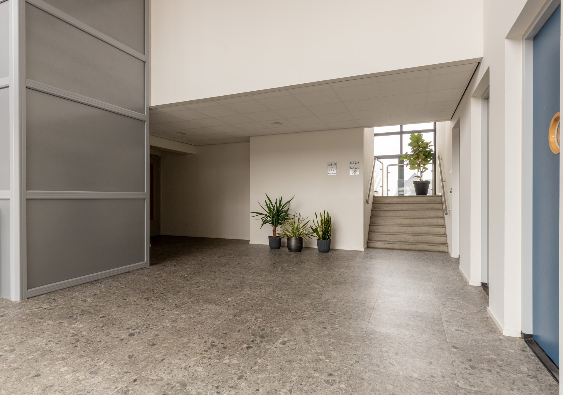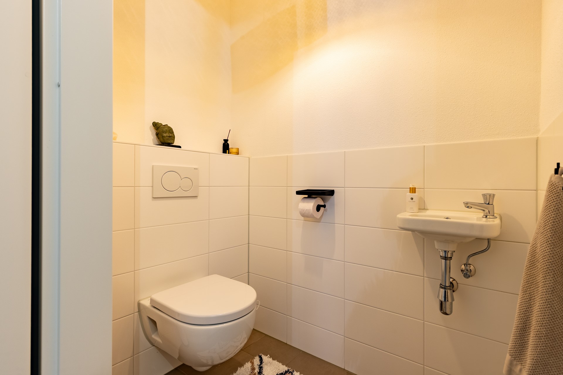Bij binnenkomst betreedt u de nette entreehal, waar zich het separate toilet en de technische ruimte bevinden. In deze technische ruimte zijn de cv-ketel en de wasmachine- en drogeraansluiting praktisch opgesteld. Vanuit de hal zijn alle vertrekken toegankelijk, wat zorgt voor een prettige en logische indeling.
