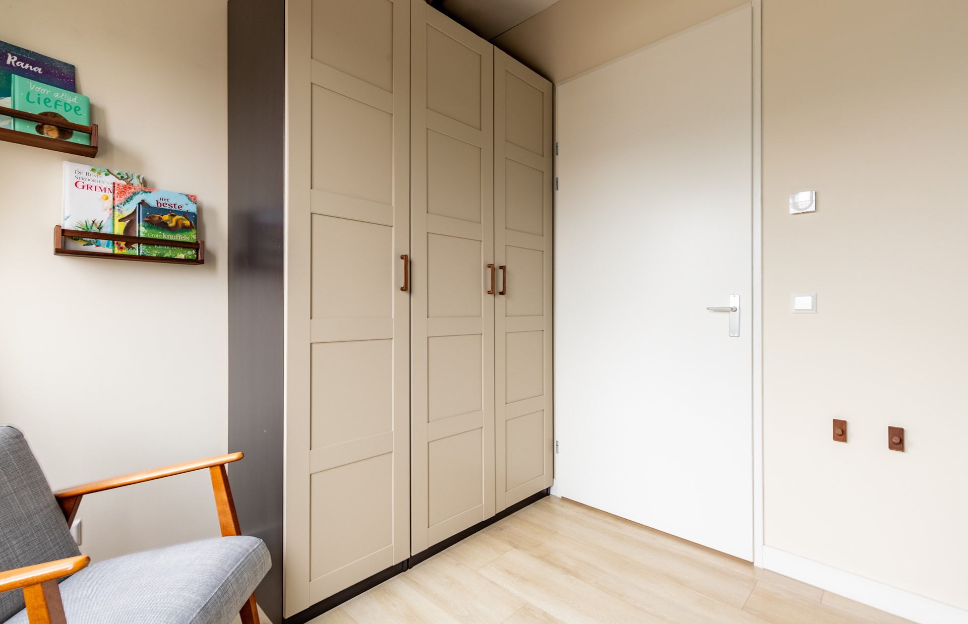 De ruime woonkamer aan de voorzijde van de woning kenmerkt zich door de moderne afwerking. De luxe open keuken is van alle gemakken voorzien en sluit naadloos aan op de leefruimte, waardoor een fijne plek is ontstaan om te koken en te ontspannen. Vanuit de woonkamer heeft u bovendien toegang tot het inpandige balkon, waar u in alle rust kunt genieten van het uitzicht en de buitenlucht.