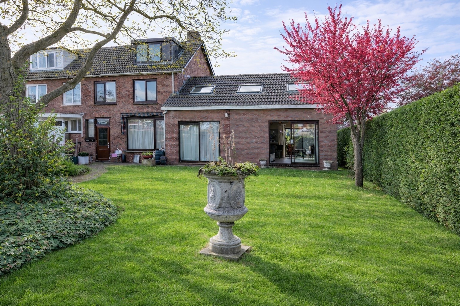 Zeer royale halfvrijstaande woning met grote aanbouw, diepe zonnige tuin en vrijstaande stenen garage!