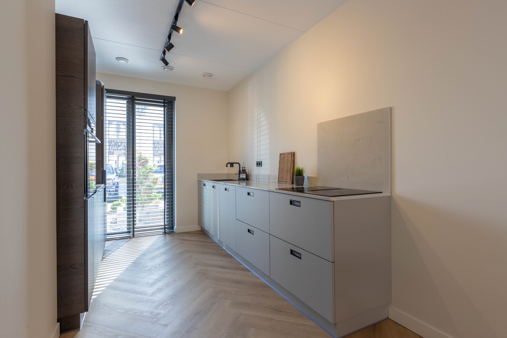 De open keuken (2023) bevindt zich aan de voorzijde en is uitgevoerd in een stijlvol en praktisch design, voorzien van hoogwaardige inbouwapparatuur en een kokendwaterkraan. Een heerlijke plek om te koken en samen te komen.